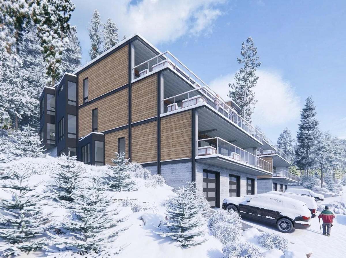 The Lakota Pointe Flats bring a unique building typology and contemporary approach to mountain side living. Sited amongst mature trees, and terracing down the hillside, each unit enjoys panoramic views of Winter Park Resort.